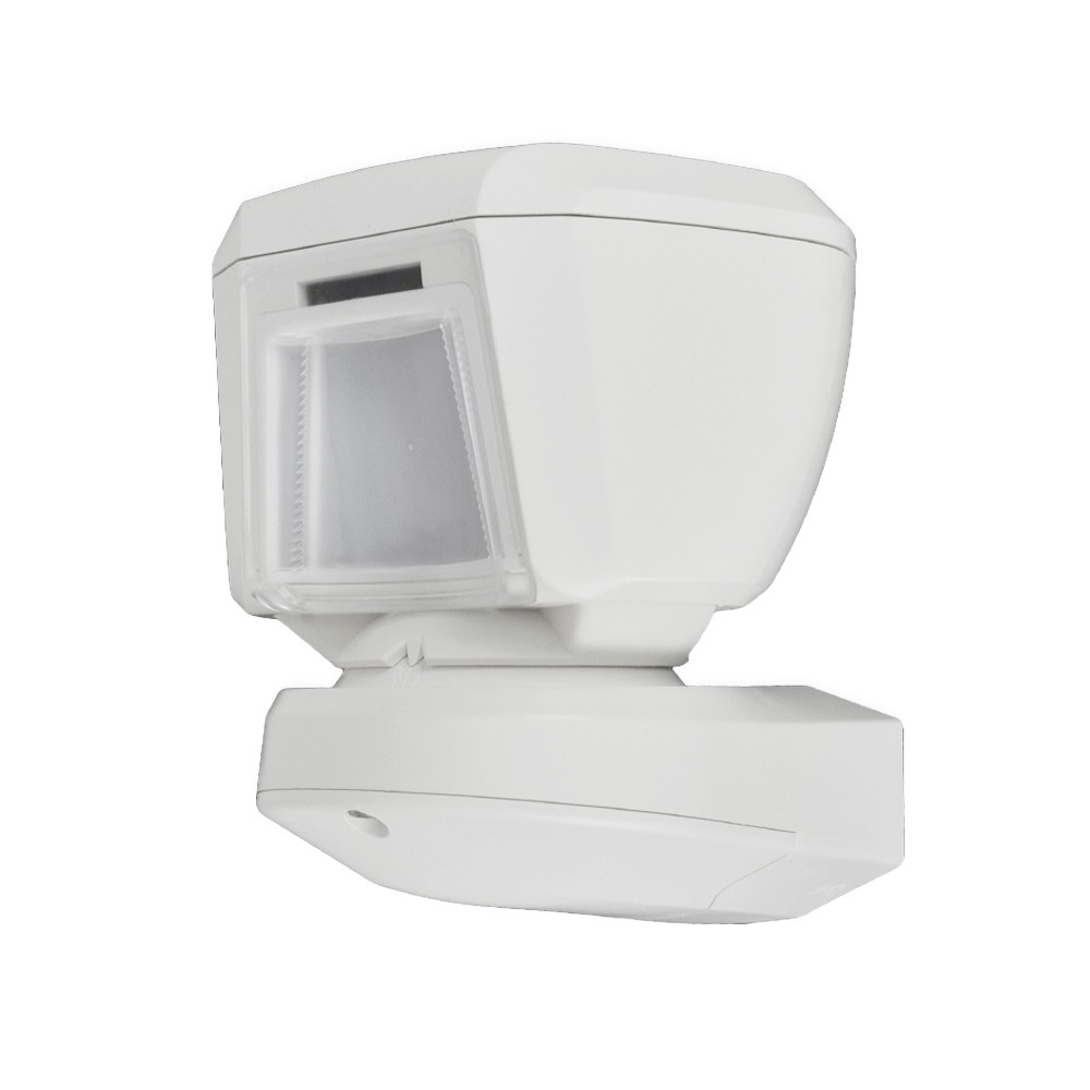 Bezprzewodowa czujka ruchu PIR z komunikacją dwukierunkową, przeznaczona do montażu zewnętrznego.